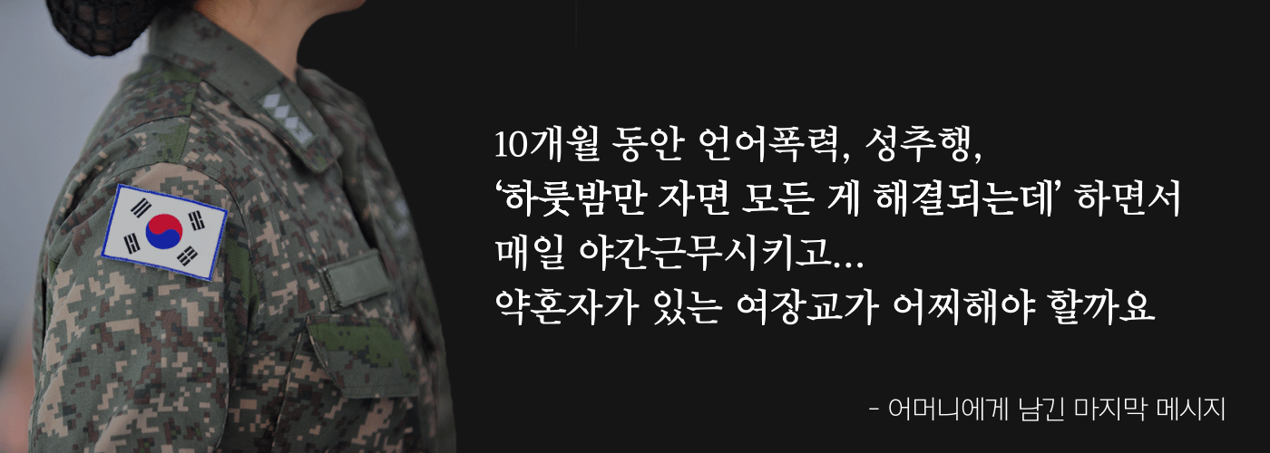 군 차원의 강력한 처벌을 기대했지만 돌아온 건 회유였다. 당시 부사단장은 오 대위 유족에게 전화를 걸어 이렇게 말했다. "A 소령이 농담으로 한 건데 오 대위를 잘 보내주는 의미에서 A 소령을 용서해 주자." 대체 그녀를 잘 보내준다는 것은 무엇인가?
