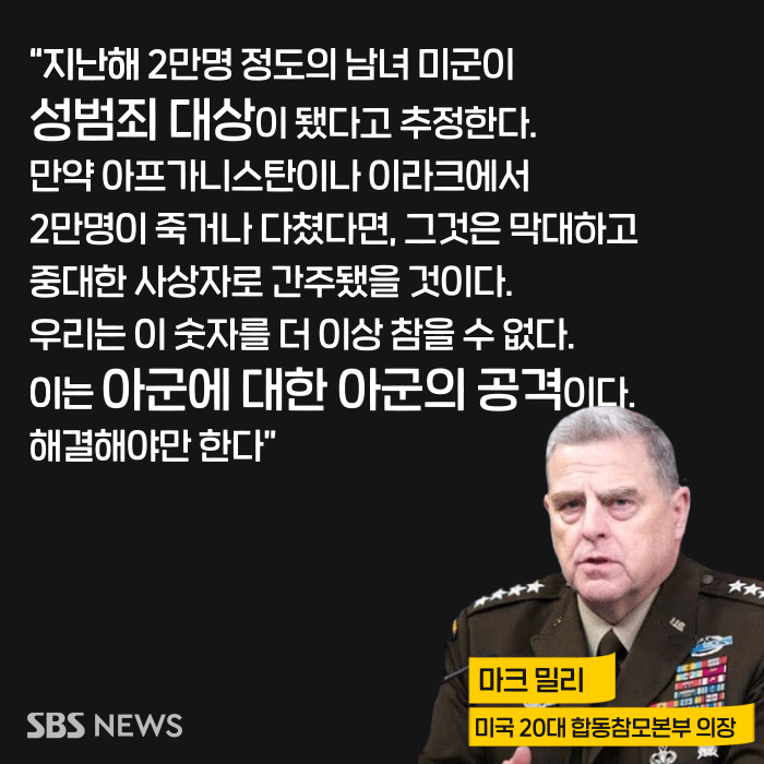 조 바이든 미 대통령은 지난 1월 군내 성폭력 대응 방안 마련을 지시했다. 독립적 검토위원회는 군내 성범죄 기소 권한을 지휘관에게서 분리하는 권고안을 제시했고 군 최고수뇌부가 이를 받아들이기로 했다. 최종적으로 의회 문턱만 넘으면 되는 상황이다.