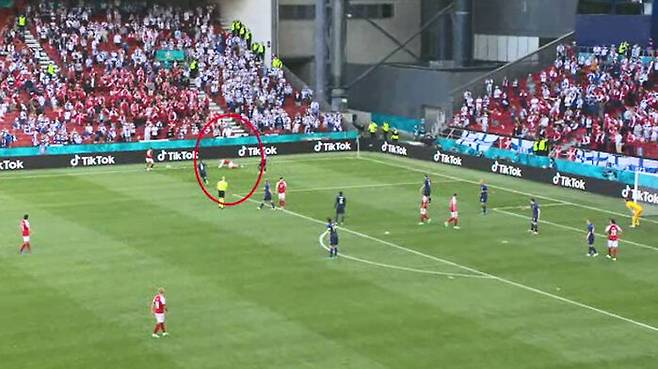 그러자 주장 키예르가 재빠르게 달려가 쓰러진 에릭센의 기도를 확보해 응급조치한뒤 급히 의료지원을 요청합니다.