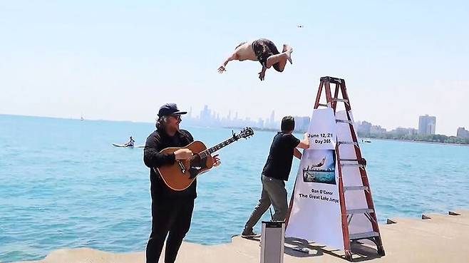거침없이 물속으로 뛰어드는 남성의 모습, 미국 시카고에 사는 버스 운전사 댄 오코너 씨입니다.