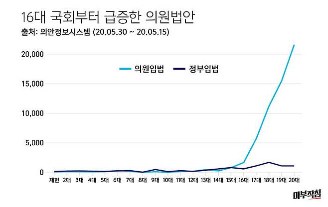 "헌정 역사상 유례 없는 거대 여당의 탄생". 지난 해 치러진 21대 총선 결과다. 그리고 지난해 6월 5일, 21대 국회 첫 본회의가 소집됐다. 21대 국회, 벌써 1년이다. 식물 국회로 불리며 국민의 실망을 부른 20대 국회를 뒤로하고 시작된 21대 국회다. 이번 국회의 정당과 의원들은 국민 기대에 부응했을까. SBS 데이터저널리즘팀 <마부작침>은 21대 국회 데이터를 기반으로 21대 국회 1년차 활동을 점검했다. 국회 핵심 임무인 "입법" 데이터를 집중 분석했다.
