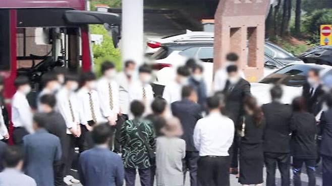 떠나는 김 군에게 하얀 국화꽃을 바친 친구들은 운구차를 보며 차마 자리를 뜨지 못했습니다.