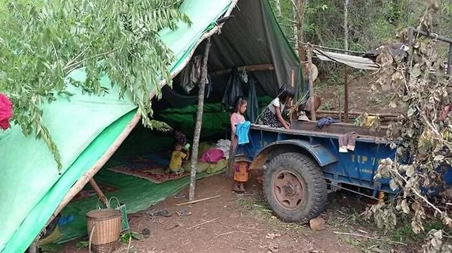 아기의 가족은 지난달 미얀마군이 페콘의 교회를 집중 포격하자 난민촌으로 들어왔습니다.