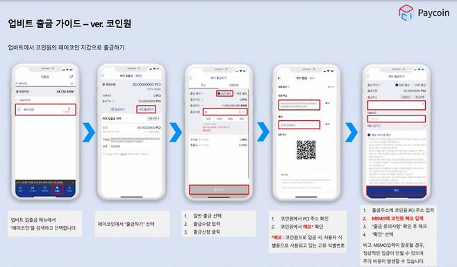 업비트 페이코인 출금해 코인원 지갑' 이동 안내에 나선 바 있다.