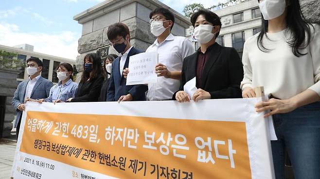 난민인권네트워크 등은 오늘(16일) 헌법재판소 앞에서 기자회견을 열고 "부당하게 구금시설에 가뒀다가 뒤늦게 위법함이 밝혀지는 수많은 사례에도 사과하거나 보상하는 사람은 없다"며 "억울하게 구금돼도 아무 보상을 청구할 수 없는 현 법제가 헌법에 위반된다는 헌법소원 심판을 제기한다"고 밝혔습니다.