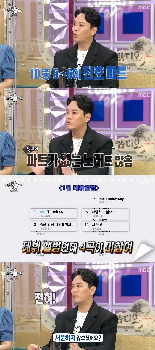 이어 "1집~4집에서는 진호 파트가 10중 5~6이었다. 나머지 파트를 멤버들이 나눠서 했다. 나는 데뷔 때부터 파트가 적었고 1집 앨범에 내 파트가 없는 노래들도 있다"고 덧붙였다.