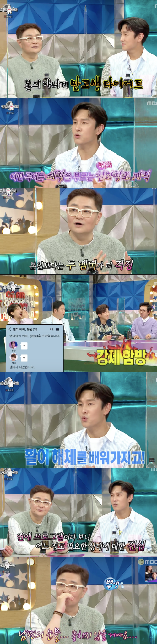 MC들도 팬들이 걱정할까 싶어 SNS로 화해과정을 실시간 전달했던 일화를 언급, 김동완은 “제일 앤디가 노력했다, 갑자기 둘만의 단톡방을 만들기도 했다”며 웃음 지었다.