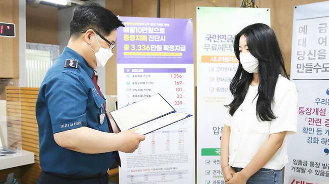 서울 강동경찰서는 일상업무를 하는 과정에서 의심을 품고 기지를 발휘한 관내 우리은행 명일동지점의 진사랑 주임에게 감사장을 전달했다고 오늘(17일) 밝혔습니다.