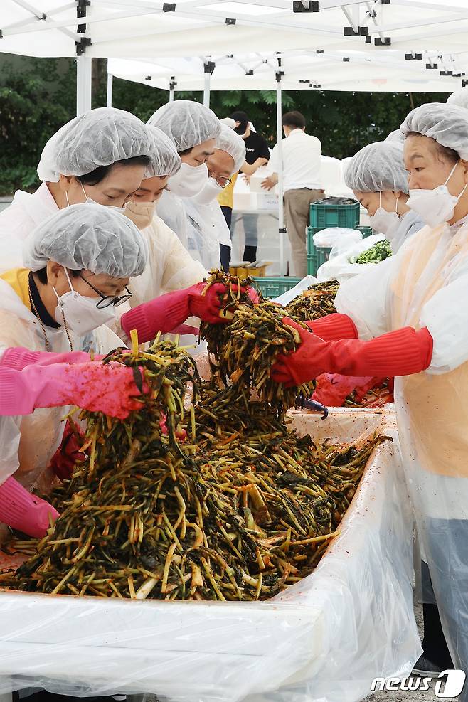 이번 봉사를 통해 완성된 김장김치 2,000kg은 신종 코로나바이러스 감염증(코로나19) 예방을 위해 비대면으로 대상 가정에 전달된다. 2021.6.17/뉴스1