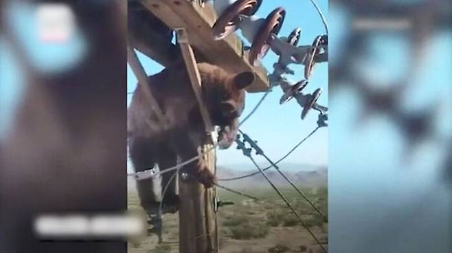 미국 애리조나주의 높은 전봇대에 어린 불곰 한 마리가 매달려 있습니다.