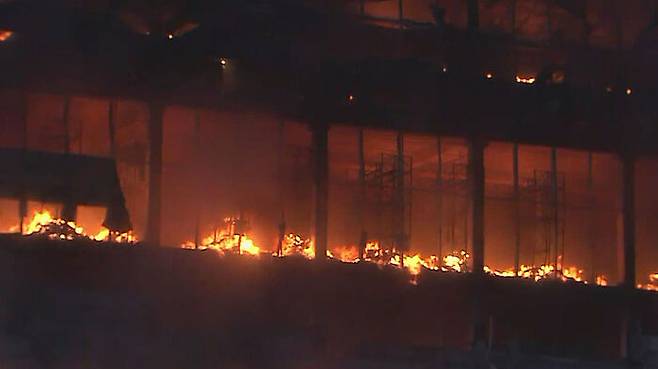 불씨가 사방으로 번지면서 창고 전체로 불이 확산된 것으로 보입니다.