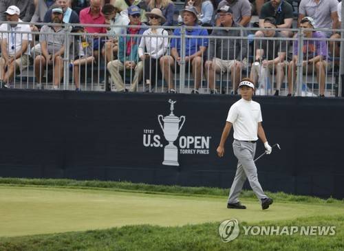 epa09280169 Yosuke Asaji of Japan putts on the eleventh hole during the first round of the 2021 US Open golf tournament on the South Course of the Torrey Pines Golf Course in San Diego, California, USA, 17 June 2021. EPA/ERIK S. LESSER