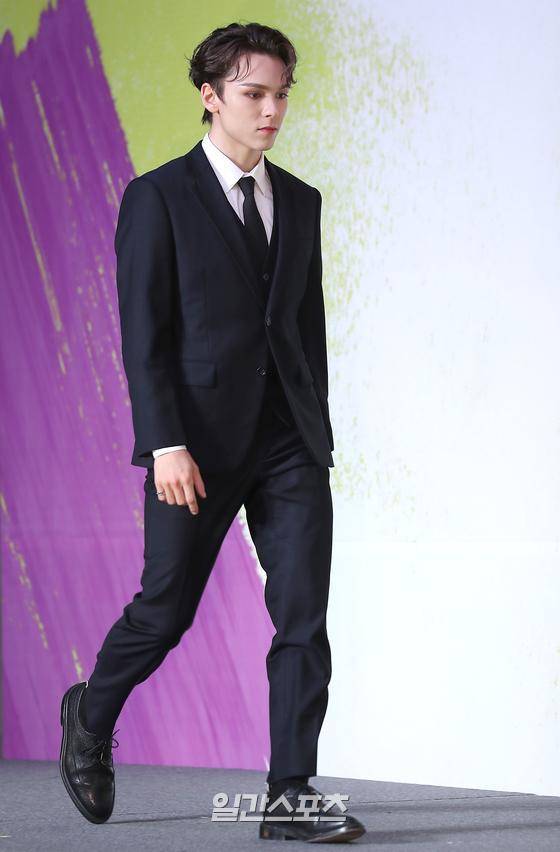 그룹 세븐틴 버논이 18일 오후 서울 강남구 삼성동 인터컨티넨탈 서울 코엑스에서 진행된 미니 8집 ‘유어 초이스(YOUR CHOICE)’ 발매 기념 글로벌 기자간담회에 참석해 포토타임을 갖고 있다.