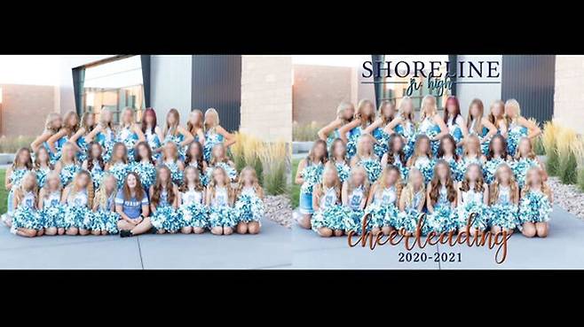 미국 유타주의 한 중학교 치어리더팀 단체 사진입니다.