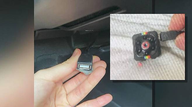 그런데 유심 대신 운전석 밑에서 소형 카메라가 설치됐던 흔적을 발견했습니다.