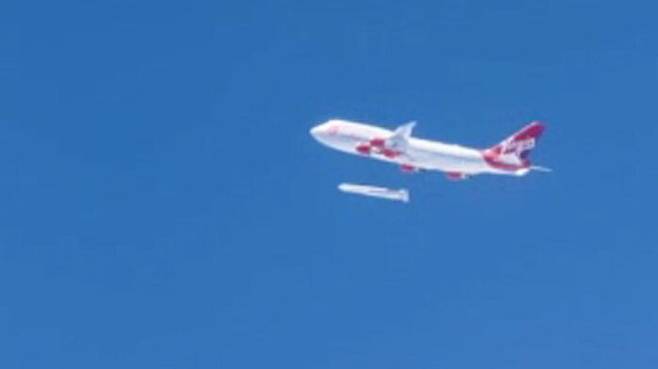 보통 로켓은 수직으로 발사해서 대기권을 뚫고 목표 궤도에 진입하는데, 이 로켓은 비행기에서 수평으로 발사해서 자연스럽게 목표 궤도에 진입하는 방식입니다.