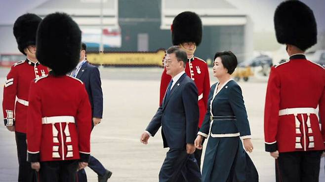 좀 희미하기는 한데 공항에 내리는 대통령 뒤로 보이는 저 길고 하얀 물체가 보이시나요?