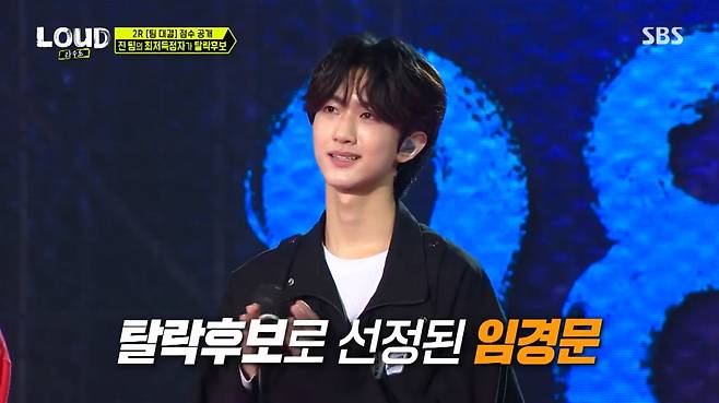 19일 오후 방송된 SBS 'LOUD:라우드'에서는 2라운드 팀 미션이 진행되며 임경문(JYP)이 첫 탈락자 후보로 올랐다.