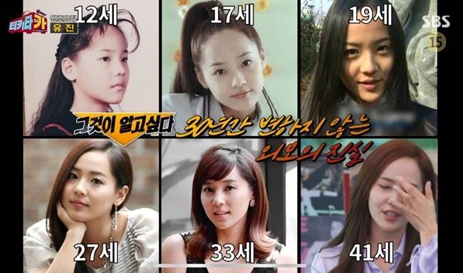 김구라는 "본인도 많이 안 변했다고 생각하지 않나"라고 물었고 유진은 "2년 전까지만 해도 자신 있었다. 40살이 넘어가니까 주름이 정말 생기더라. 눈가 주름 때문에 웃는 게 겁난다. 그래서 요즘은 1일 1팩을 하려고 노력한다. 하니까 다른 것 같다"며 비법을 전했다.