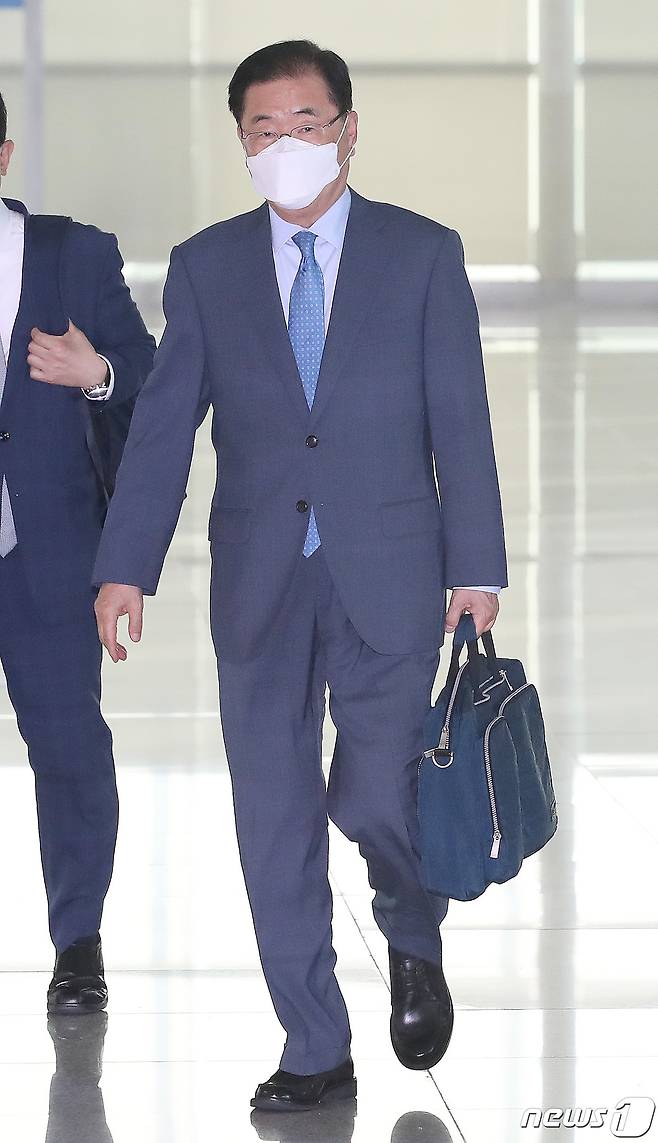 (인천공항=뉴스1) 임세영 기자 = 정의용 외교부 장관이 베트남, 싱가포르, 인도네시아 등 아세안 3국 순방을 위해 21일 인천국제공항을 통해 출국하고 있다. 외교부에 따르면 정 장관은 이날부터 25일까지 이어지는 순방을 통해 각국 외교장관과 대통령·총리 등 정부 고위 인사들과 만나 보건·방역, 경제회복, 주요 지역현안에 관한 협력 강화 방안을 논의할 예정이다. 2021.6.21/뉴스1