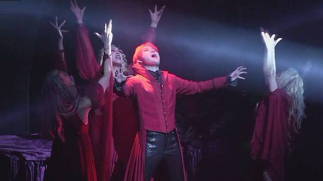[김준수/뮤지컬 배우·가수 : 뮤지컬에서의 드라큘라는 일단 드라큘라하면 모두가 여러 다양한 드라마나 영화 매체로 한 번쯤은 다들 접해보실 거라고 생각되는데요. 이 뮤지컬 드라큘라의 새로운 점은 드라큘라가 될 수밖에 없었던 좀 슬픈 사연, 혹은 400년 동안 한 여자만을 그리워하는 사랑 이야기, 그런 것들. 그러니까 우리가 알지 못했던 또 다른 면을 볼 수 있는 작품이라고 생각합니다.]