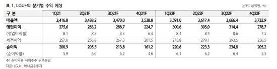 하나금융투자는 LG유플러스에 대해 올해 매출액과 이익성장율, 기대 배당수익률 수준을 감안하면 과도하게 저평가됐다며 매수 투자의견과 목표주가 1만8000원을 유지한다고 22일 밝혔다.
