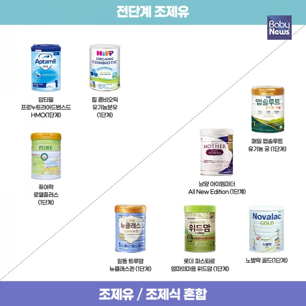 보통 6개월 미만의 아이들에게 먹이는 분유는 대부분 조제유이며, 그 이후 단계에는 조제식이 많다. 그러나 요즘 부모들이 조제유를 선호하는 트렌드를 반영해 돌 이후에도 먹이는 조제유 분유 제품이 많아지고 있다.