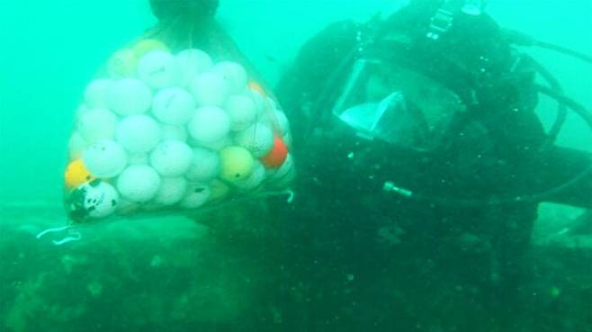 [다이빙업체 대표 : 20여 년 전부터 골프공이 포인트에 계속 있었습니다. (다이버들이) 주워 나와서 자기 연습 공으로 쓰는 분들도 있고….]
