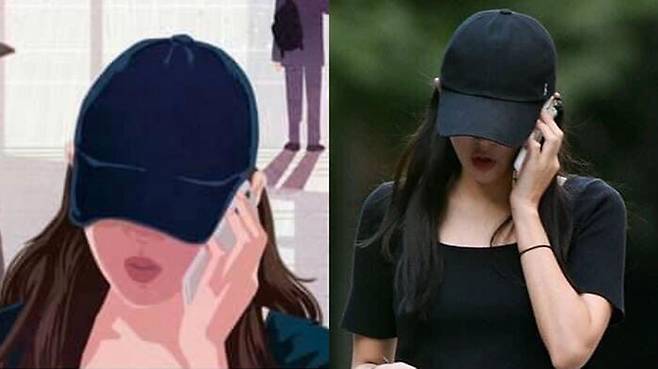 의혹이 제기된 일러스트 속 여성은 딸 조민 씨가 모자를 쓴 채 통화하며 학교에 가는 모습이 찍힌 사진 속 여성과 비슷해 보입니다.