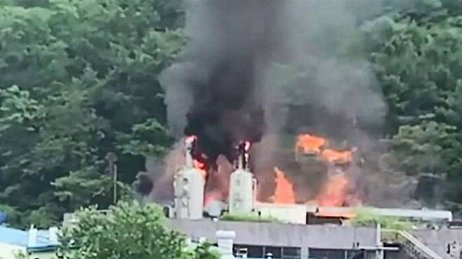 거센 불길이 설비로 옮겨 붙으면서 공장 전체가 순식간에 화염에 휩싸였습니다.