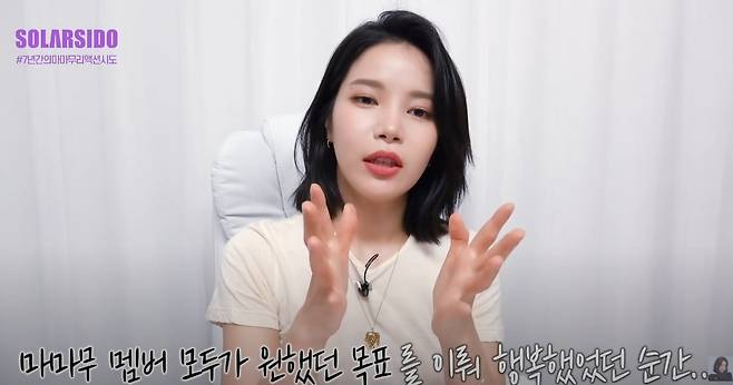 이날 솔라는 "어느덧 마마무 데뷔 7년이 됐다. 그래서 오늘의 영상은 마마무의 7년을 영상으로 보면서 리액션 하는 그런 시도를 준비했다"라며 "시간이 느린 줄 알았는데 정말 빠르다"라고 전했다.