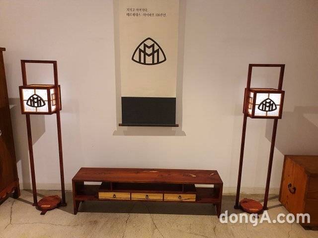 아름지기 사옥은 기와지붕과 나무를 활용해 전통 한옥 콘셉트로 꾸며진 공간이다. 한국의 전통 수공예 기술을 통해 마이바흐 브랜드 장인정신을 소개하는 특별전시를 다음 달 18일까지 운영한다. 역사와 장인정신을 기반으로 완성된 고급스러운 한국 전통미가 마이바흐가 추구하는 브랜드 철학과 일맥상통한다는 것을 전시를 통해 보여준다. 마이바흐를 테마로 하는 전통 염색과 한복, 가구, 한지 등 한국의 장인들이 직접 만든 작품을 전시한다. 도자 분야에서 전통 수공예 기술을 보유한 광주요는 벤츠와 협업해 마이바흐 특유의 럭셔리 감성을 구현한 작품 ‘달항아리’ 작품을 완성했다. 이 작품은 전 세계에 단 한 점뿐이라고 한다.