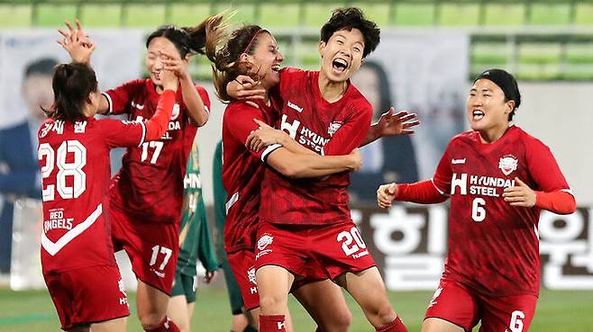 전반 35분 장슬기의 선제골로 앞서나간 현대제철은 후반 21분 손화연, 후반 32분 이민아의 골이 연이어 터져 대승을 완성했습니다.