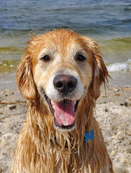 바다를 헤엄치다가 구조된 골든레트리버가 2주 만에 가족 품으로 돌아갔습니다.
