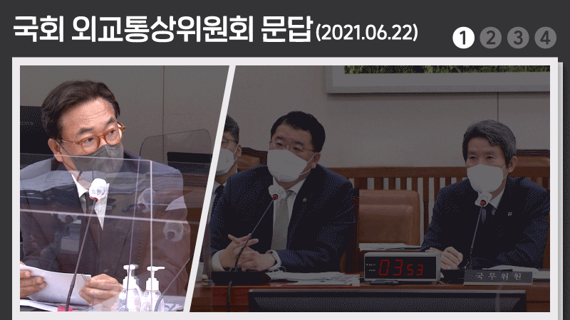 지난 22일, 국회 외교통상위원회에서는 정진석 의원(국민의힘)과 이인영 통일부장관, 최종건 외교통상부 차관 간에 이런 문답이 오갔다.