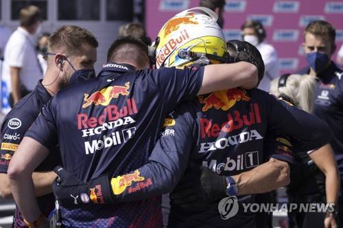 epa09302931 Dutch Formula One driver Max Verstappen of Red Bull Racing celebrates with them members after he took pole position during the qualifying session of the Formula One Grand Prix of Styria at the Red Bull Ring in Spielberg, Austria, 26 June 2021. The 2021 Formula One Grand Prix of Styria will take place on 27 June. EPA/DARKO VOJINOVIC