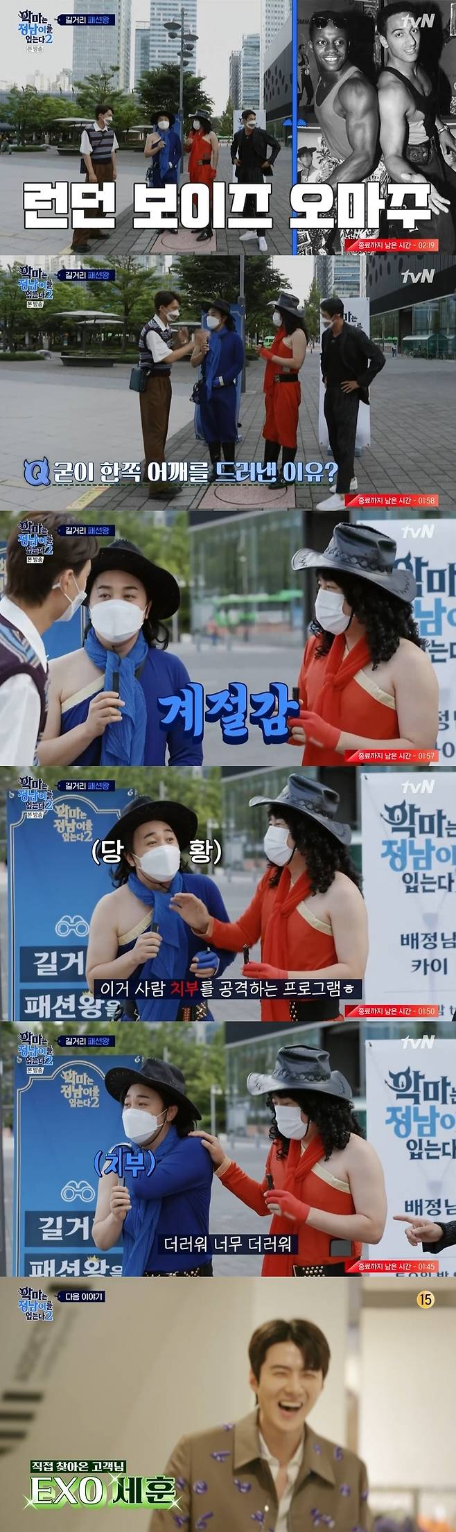 카이, 배정남은 길거리 패션왕을 뽑기 위해 상암동에 방문했다. 카이는 길거리를 둘러보다 tvN '코미디 빅리그' 속 '사이코러스'로 활약 중인 황제성, 양세찬을 발견했다.