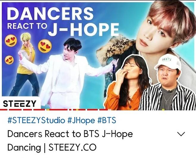 지난 21일 미국의 온라인 댄스 스쿨 ‘스티지 스튜디오’는 유튜브 채널에 ‘댄서즈 투 방탄소년단 제이홉 댄싱(Dancers React to BTS J-Hope Dancing)’이란 제목의 영상을 게재했다. 스티지 스튜디오는 2014년 설립된 회사로 최고 수준의 댄서들이 수백 개의 수업을 진행하는 일명 ‘댄스계의 넷플릭스’로 불린다.