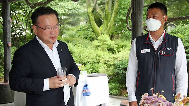 김 총리는 오늘(29일) 서울 삼청동 총리공관에서 민주노총 지도부와 간담회를 갖고 "다양한 노동 현안 해결을 위해서는 사회적 대화를 통한 합의가 필요하다"며 경사노위에 참여하는 결단을 내려달라고 말했습니다.