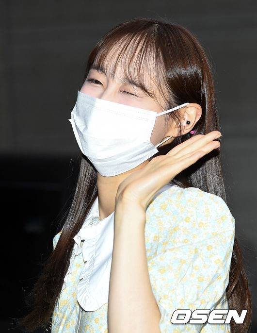 이달의 소녀 츄가 출근하며 포즈를 취하고 있다. 2021.06.29 /cej@osen.co.kr