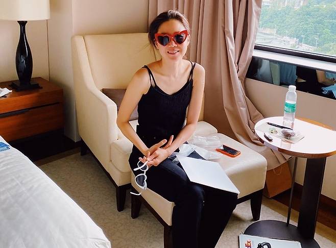 사진 속 공효진은 블랙 케미솔과 팬츠로 편안하면서도 스타일리사한 일상룩을 완성했다. 무심하게 머리를 넘겨 이마를 드러낸 그는 빨간색 하트 모양 선글라스를 쓰고 장난기를 발산해 눈길을 끌었다.