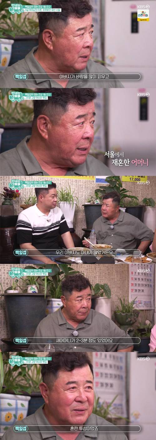 이날 백일섭은 "초등학교 3학년, 9살 때 부모님이 이혼을 하셨다"며 "아버지가 바람을 많이 피웠다. 아버지도 어머니랑 뭐가 안 맞았겠지"라고 고백했다.