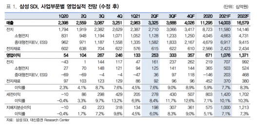 대신증권은 1일 삼성SDI에 대해 투자의견 매수와 목표주가 85만원을 유지했다.