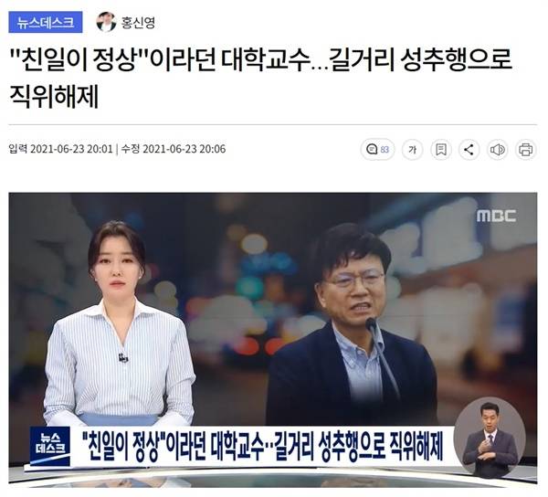 "친일이 정상"이라던 대학교수…길거리 성추행으로 직위해제