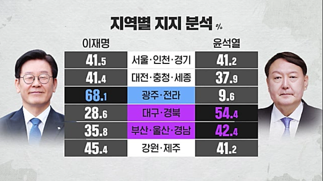 지역별로는 호남권에서는 이 지사, 영남권, 특히 대구·경북에서는 윤 전 총장 쏠림이 심했습니다.