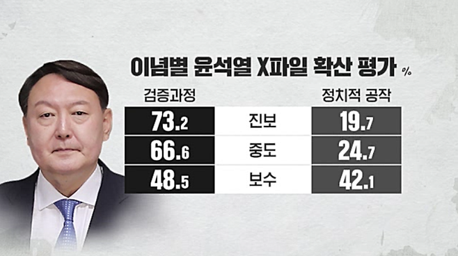 이념 성향별로 보면 진보, 중도층에서는 3분의 2 이상이 '검증 과정'이라고 답했고, 보수층에서는 '검증 과정' 48.5%, '정치 공작' 42.1%로 조사됐습니다.