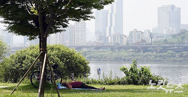 서울에 올여름 첫 폭염주의보가 내려진 1일 오전 뚝섬 한강공원을 찾은 시민들이 나무그늘에서 더위를 식히고 있다. 황진환 기자