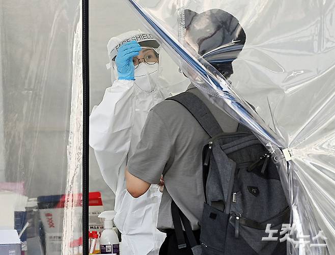 코로나19 신규 확진자가 826명 발생한 2일 경기도 수원역 광장에 마련된 임시선별진료소에서 시민들이 검사를 받기 위해 줄을 서 있다. 전날 762명보다 64명 늘어난 수치로, 지난 1월 7일(869명) 이후 176일만에 가장 많은 확진자다. 이한형 기자