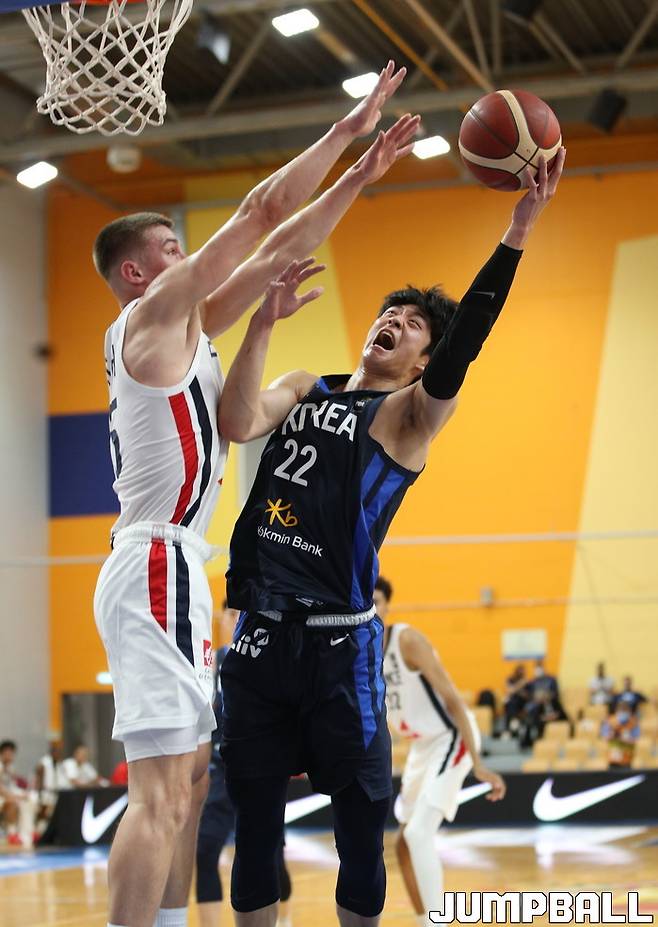 한국 U19 남자농구 대표팀은 3일(한국시간) 라트비아 리가 올림픽 센터에서 열린 2021 국제농구연맹(FIBA) U19 남자농구 월드컵 C조 프랑스와의 첫 경기에서 48-117로 대패했다.