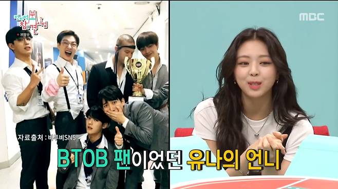 유나는 "언니 덕분에 데뷔를 하게 됐다. 언니가 BTOB(비투비)팬이었는데 연말 무대 보러 간다길래 따라갔다. 그곳에서 JYP직원이 연락처를 주며 오디션을 제안했고, 마음에 들어해서 입사하게 됐다"고 설명했다.